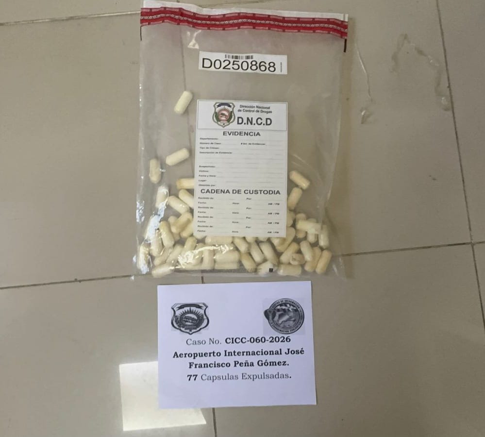 El extranjero fue intervenido antes de abordar un vuelo desde el Aeropuerto Internacional de Las Américas, (AILA-JFPG), con destino a Madrid, España, y tras detectar cuerpos extraños en sus vías digestivas, se procedió aplicar el protocolo de actuación.