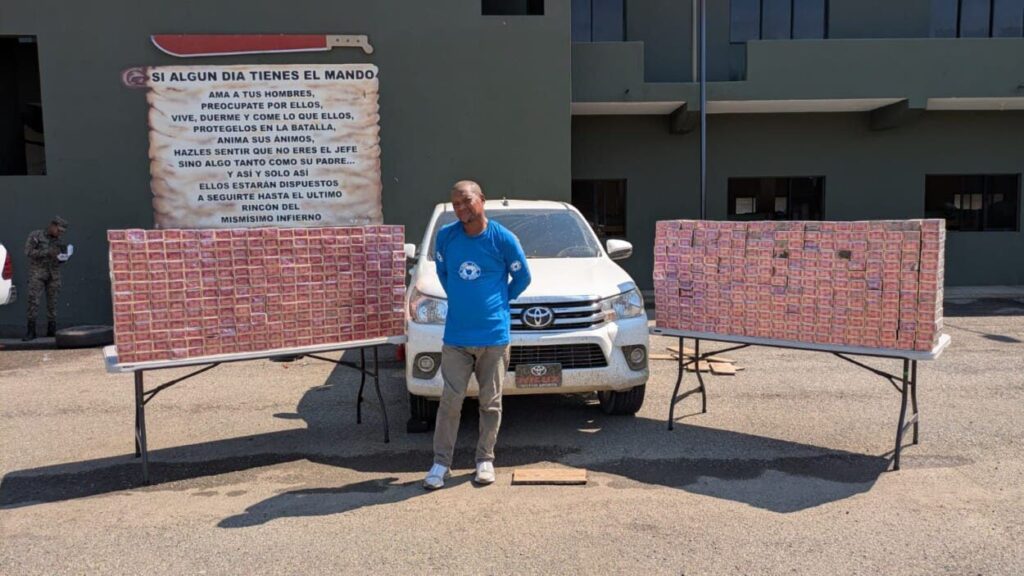Minutos más tarde, la patrulla del ERD detuvo a Mariolis Julián Fortuna Peña, conductor de otra camioneta Toyota Hilux blanca, placa L525791, en cuyo interior fueron encontrados 549 paquetes de cigarrillos Capital, equivalentes a 109,800 unidades.