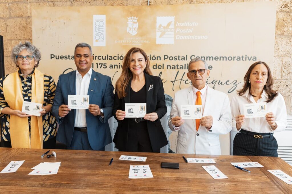 Santo Domingo . – El Instituto Postal Dominicano (INPOSDOM) y la Alcaldía del Distrito Nacional (ADN) llevaron a cabo el acto oficial de puesta en circulación de la emisión postal conmemorativa del 175 aniversario del natalicio de Salomé Ureña de Henríquez, insigne educadora, poeta y pionera de la enseñanza superior femenina en la República Dominicana.
