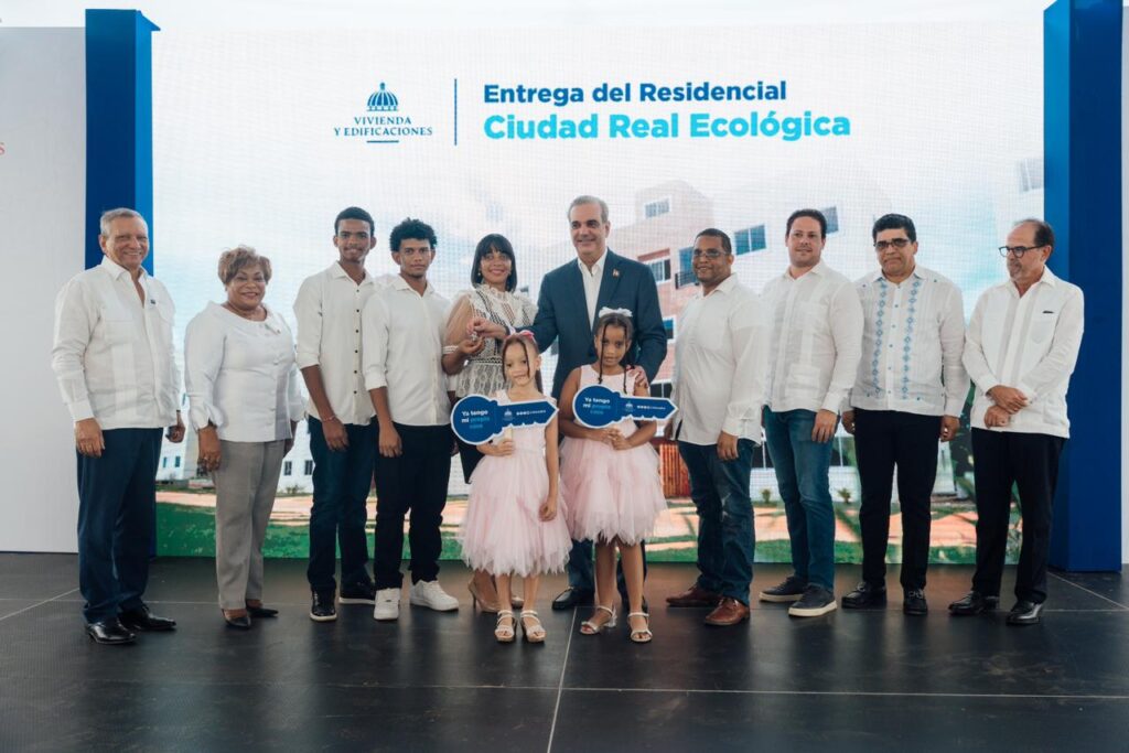 Santo Domingo Este. – El presidente de la República, Luis Abinader, junto al ministro de Vivienda y Edificaciones (MIVED), Carlos Bonilla, encabezó este domingo la entrega de 488 nuevos apartamentos en el Residencial Ciudad Real Ecológica, ubicado en el muncipio Santo Domingo Este.